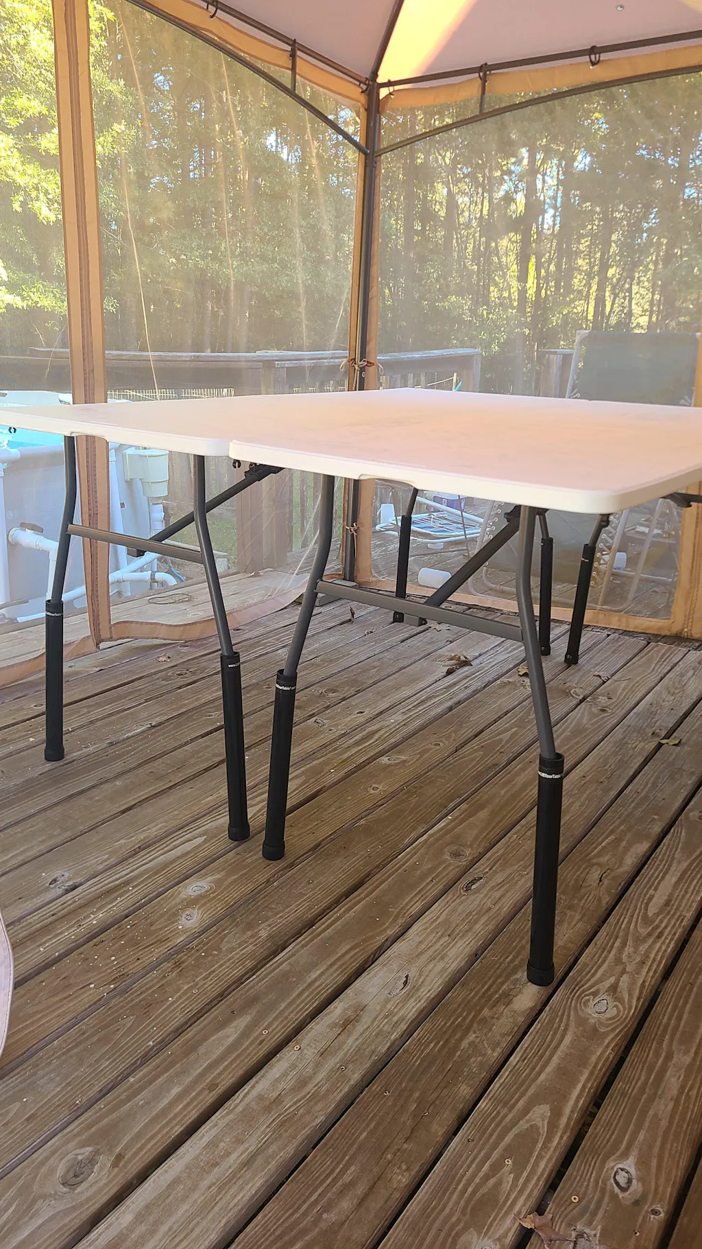 I set up an area on my back porch for bleaching and dyeing shirts. Unfortunately, the tables I got didn't have adjustable heights. My back was constantly aching from bending over a table for prolonged periods. I ordered these after seeing all the reviews on Amazon. What a lifesaver! They went on so easily and the tables are super sturdy. Perfect height for working without pain!! Would recommend to anyone and everyone!